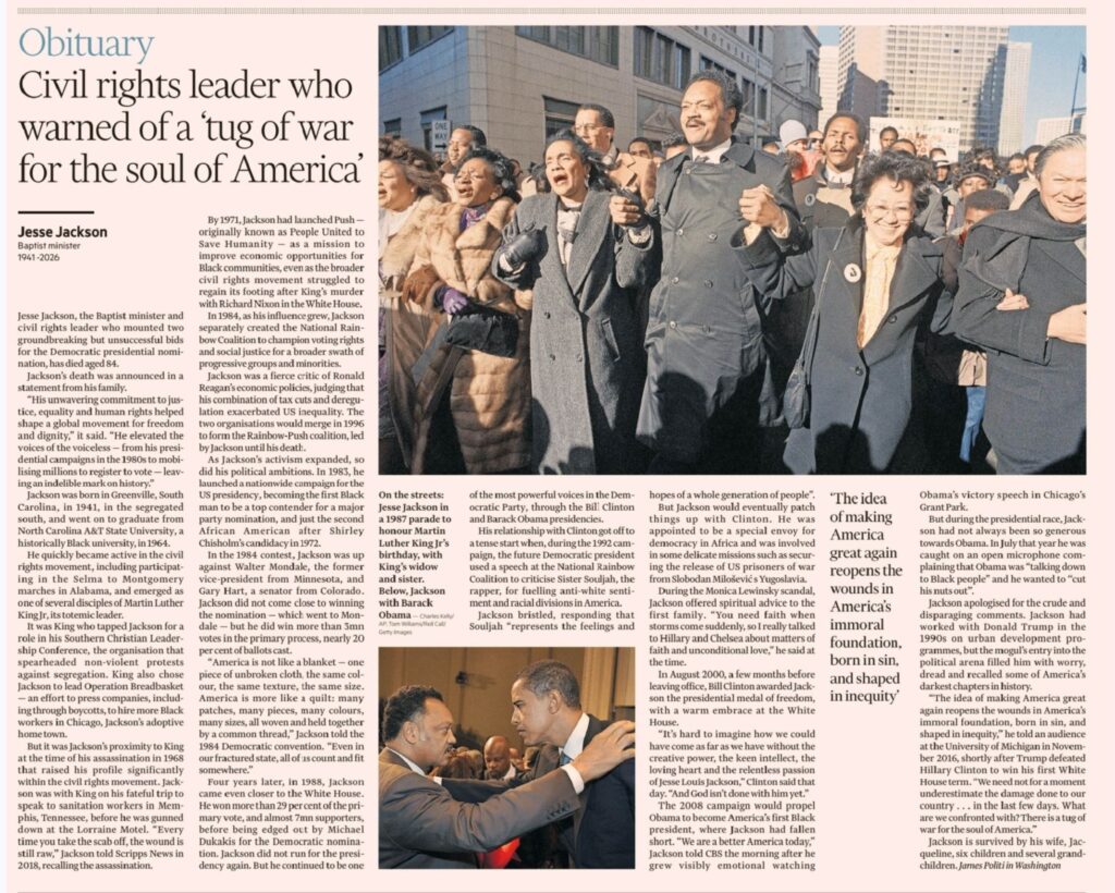 Jesse Jackson morreu aos 84 anos. Pastor batista, herdeiro político de Martin Luther King Jr., duas vezes candidato às primárias democratas, foi descrito como o homem que alertou para um “cabo de guerra pela alma da América”. A imagem que o acompanha é a de alguém que marchou entre ruas e palanques, entre a profecia e o sistema. A pergunta é simples e incômoda: essa disputa pela alma é apenas americana? Não. Ela é atlântica.