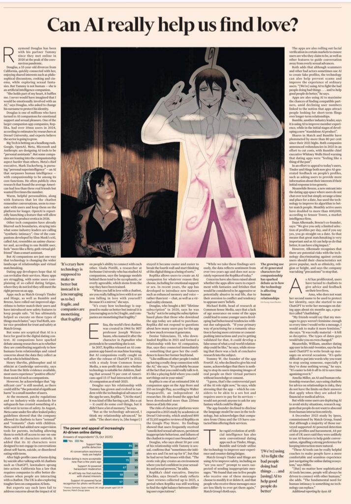 A própria indústria reconhece isso em seus relatórios. Grupos como o Match Group defendem que o uso de inteligência artificial melhora a experiência do usuário e reduz a fadiga emocional. Do ponto de vista empresarial, o argumento é sólido. Do ponto de vista humano, ele levanta uma pergunta incômoda: o que se perde quando eficiência se torna o critério central do amor?