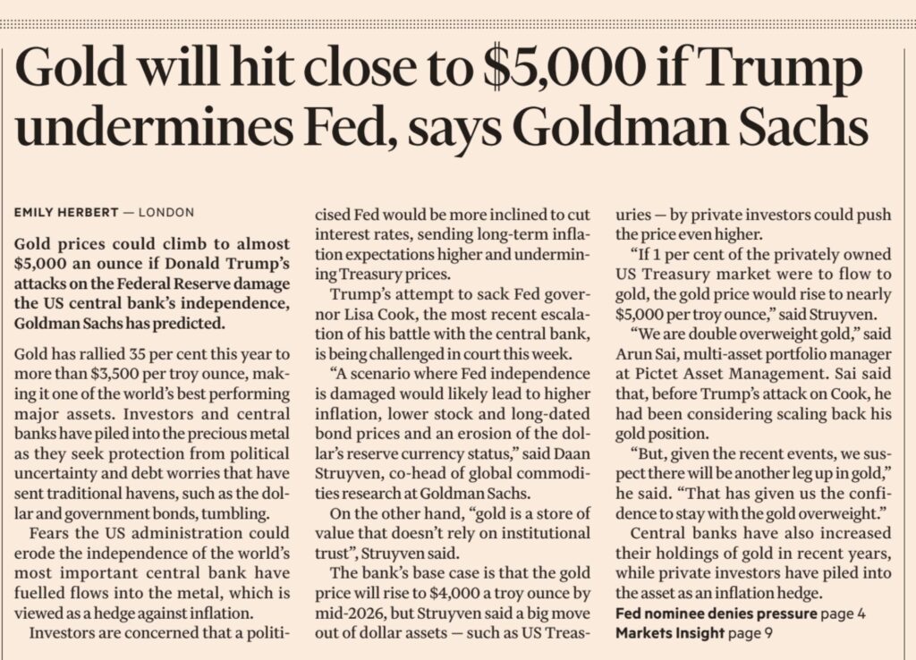 A previsão do Goldman Sachs de que o metal pode chegar a US$ 5.000 por onça se Donald Trump enfraquecer a independência do Federal Reserve não é apenas um cálculo financeiro: é o retrato de uma democracia em tensão. Mas o que essa notícia cala é ainda mais importante do que o que anuncia.