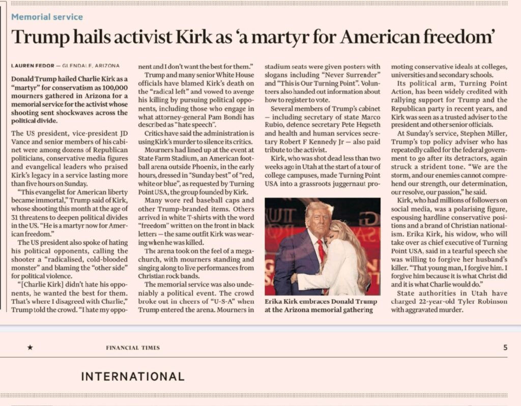 A questão que ninguém ousou levantar no funeral de Charlie Kirk é simples: como pode uma sociedade procurar identidade política no lugar onde só deveria existir interpretação humanística?