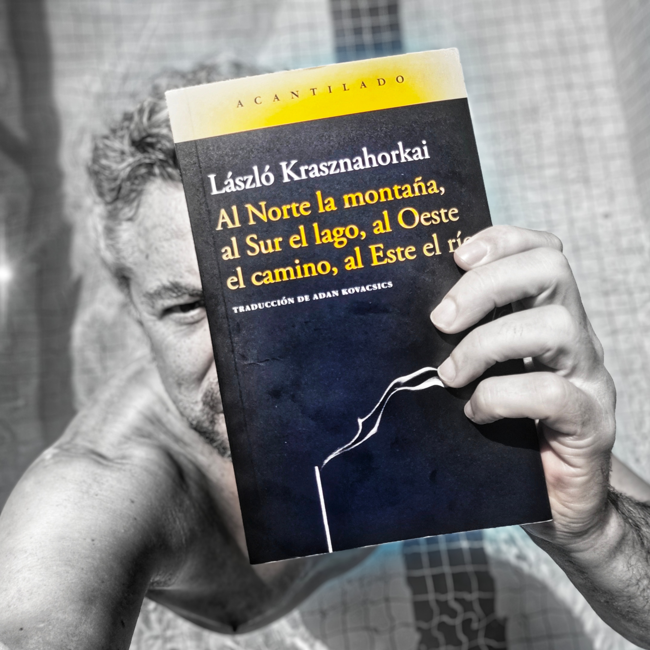 Al Norte la montaña, al Sur el lago, al Oeste el camino, al Este el río é um livro de procura. Um homem chega a Kyoto à procura de um jardim quase impossível. A história parece simples, mas o que importa aqui é outra coisa: a atenção, o silêncio, a contemplação, a exigência de olhar devagar. Krasznahorkai escreve como quem obriga o leitor a abrandar para voltar a ver.